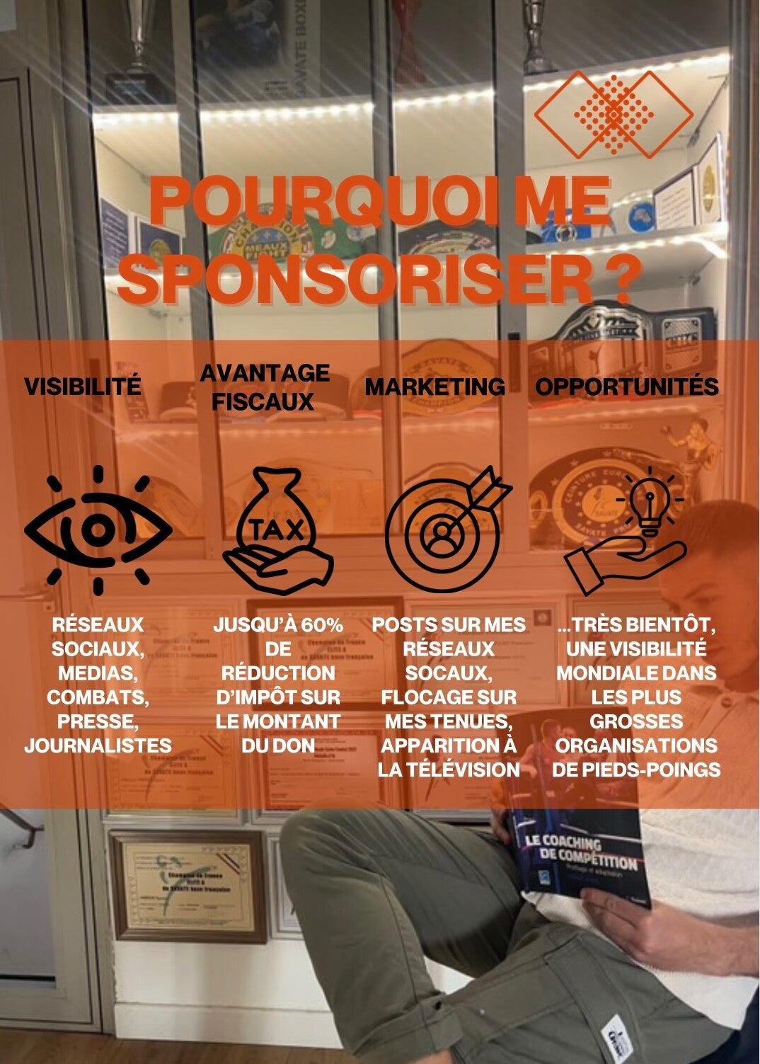 Porté par des objectifs clairs et une détermination constante, j’ai su m’imposer comme numéro 1 en boxe française. Aujourd’hui, je souhaite franchir un nouveau cap en intégrant les plus grandes organisations internationales telles que ONE Championship ou GLORY, avec l’ambition de m’imposer durablement en kickboxing. Pour atteindre ce niveau d’exigence et concrétiser ce projet, le soutien de partenaires engagés est essentiel. Ensemble, nous pouvons transformer cette ambition en réussite!